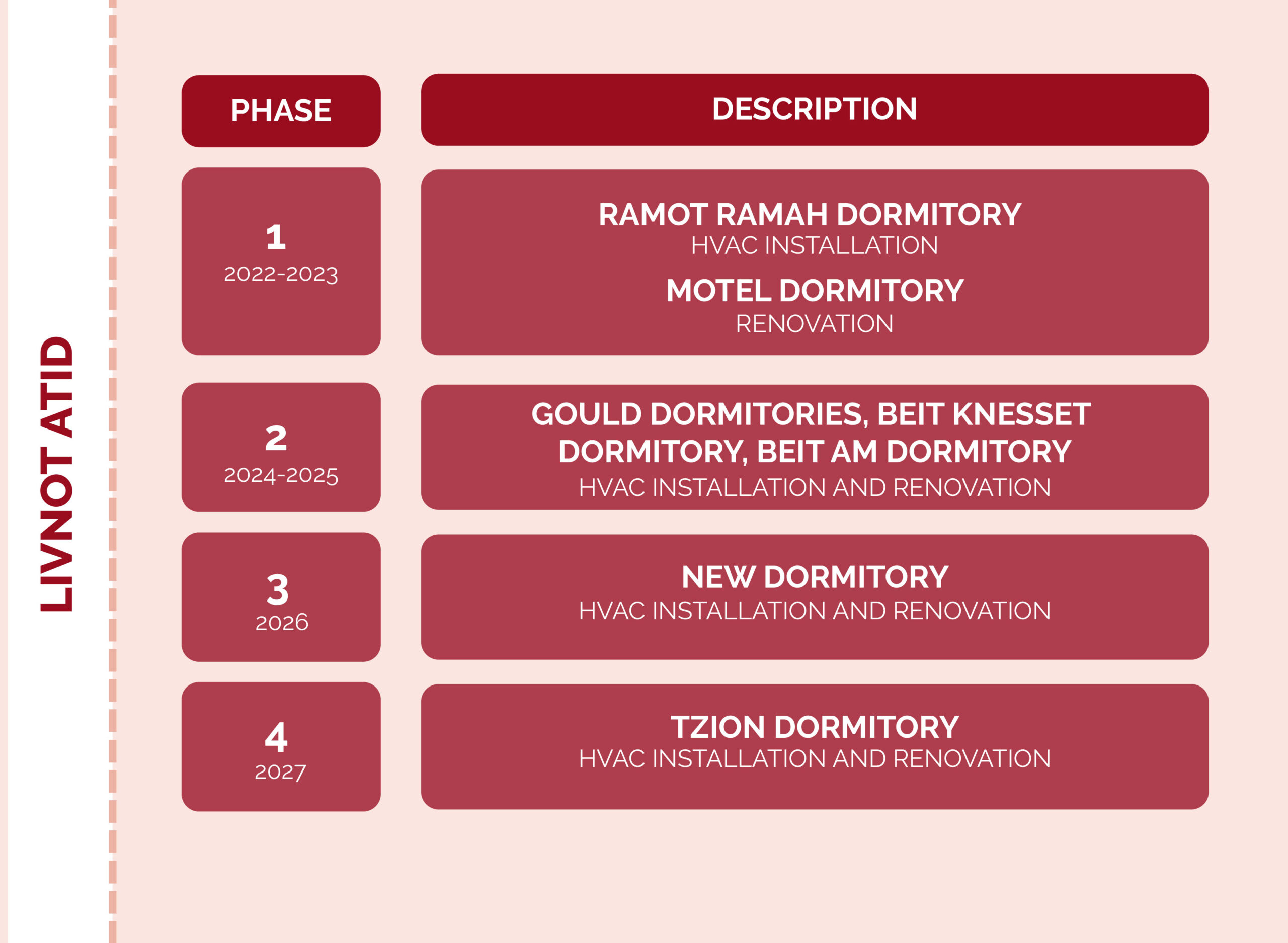 Utilizing a phased approach, we hope to complete the refurbishment of all staff dormitories. We have prioritized the residential buildings, given their impact on staff experience and believe the Livnot Atid campaign will enable us to reach our goals. Renovations will be completed during the off-season to ensure there will be no disruptions while camp is in session.
