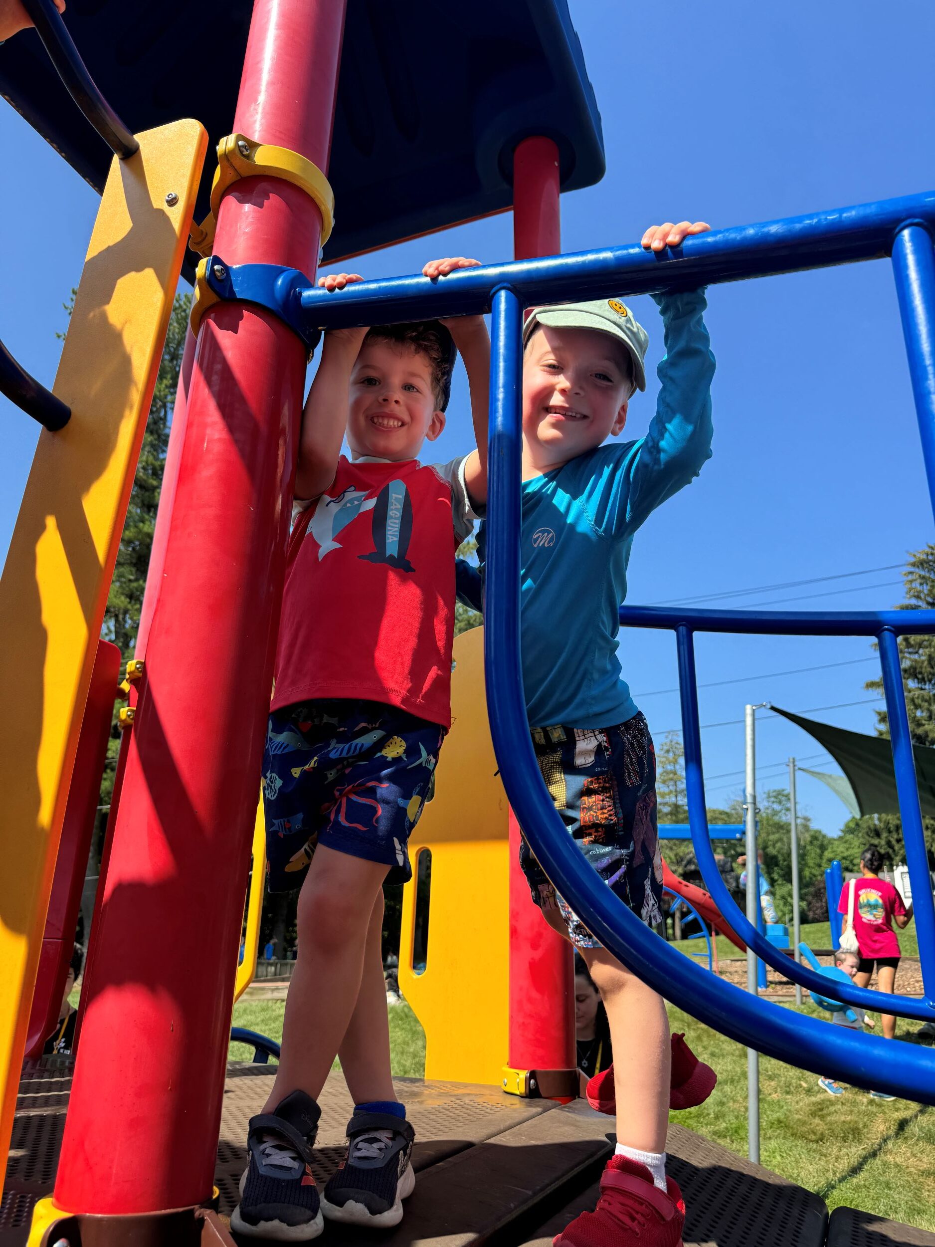 Shorashim campers kicked off Monday morning by joining the entire camp for a beautiful Havdallah, setting the tone for an incredible week ahead! Each morning begins with rikud (dancing) on the migrash, and the Shorashim have been loving learning all the moves and dancing together. Throughout the week, we’ve played lots of getting-to-know-you games and have begun learning our special Shorashim cheers and the tefillot using fun hand motions. Our creativity has been flowing all week long! In omanut (art), we explored the work of Marc Chagall through a sensory art experience using paint and various materials. In ma’ayan (beading), we made beaded bracelets, necklaces, and even sunglasses holders in red, white, and blue in celebration of the 4th of July! We also crafted our own mini American flags to help us get into the holiday spirit. At Park Mada, we explored basic concepts of engineering and physics—starting with building our very own marble runs!