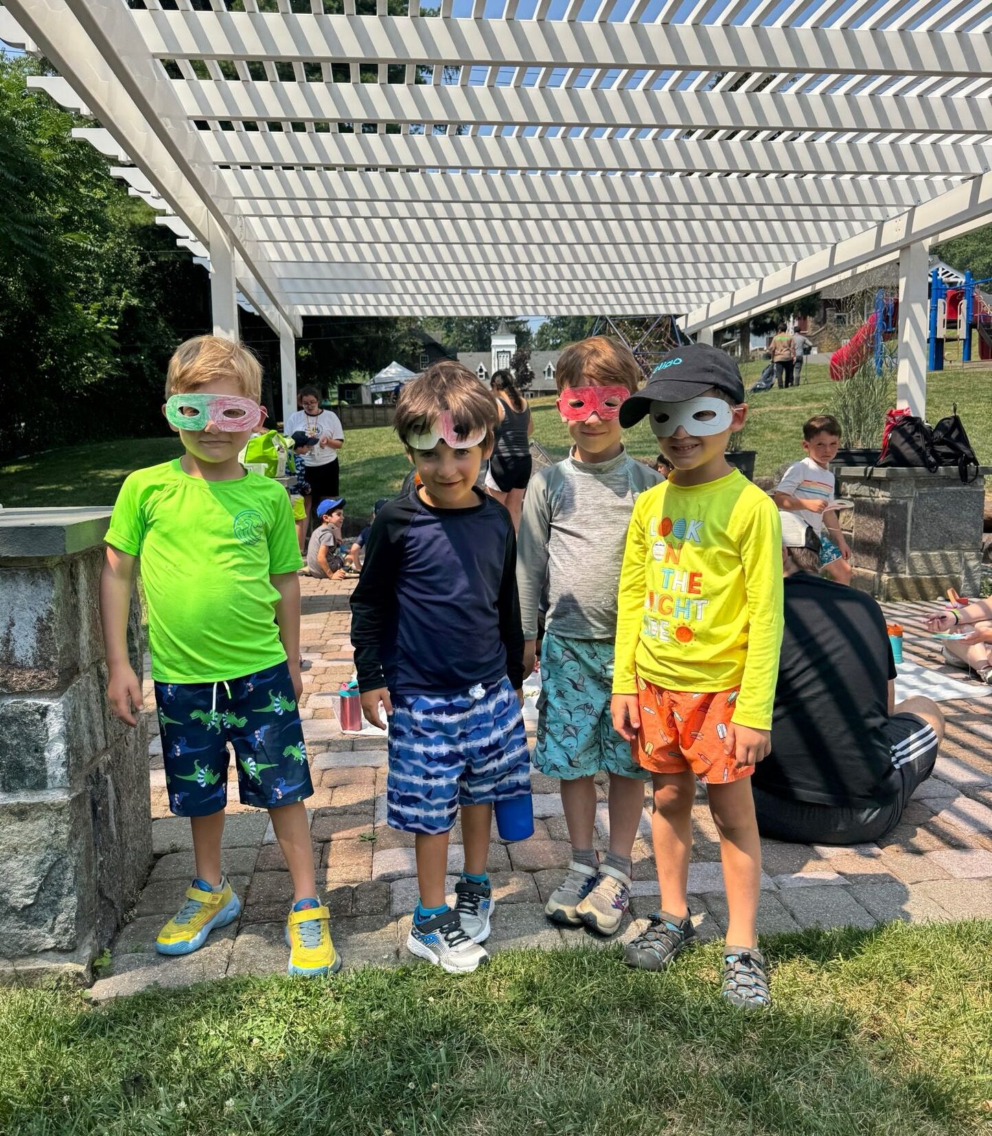 This week we had a chalom week full of energy, creativity and fun! Shorashim stayed active with a variety of sports. They especially enjoyed swimming, basketball, tennis, softball, and a new favorite, pickleball, which was a big hit this week! Soccer and Gaga continue to be all time favorites!! At Low Ropes, campers challenged themselves to reach new heights as they climbed the rock wall. The week was also filled with creativity! At Ma’ayan (beading), Shorashim made colorful necklaces using peace symbols and neon beads. In Omanut (art), the chanichim learned about Dan Reisinger, a famous Israeli graphic designer known for using bright colors and bold designs. Inspired by his work, they made their own colorful art using large printed wooden letters on black paper. In Bishul (cooking), they made their own pickles: slicing cucumbers and mixing in salt, vinegar, and spices. Shorashim had a lot of tasty fun! At Park Mada, we had so much fun playing with bubbles, but not just any bubbles! Instead of just round bubbles, chanichim made square and pyramid bubbles using 3D shapes made with pipe cleaners. We learned that when bubbles are held in a frame, they can change shape and look like cool 3D shapes. In Shiur we continued the stories of the important characters of Bereishit, including Yizchak and Rivkah at the well, Yaacov tricking his father to get Esav’s blessing, and Joseph’s coat of many colors.