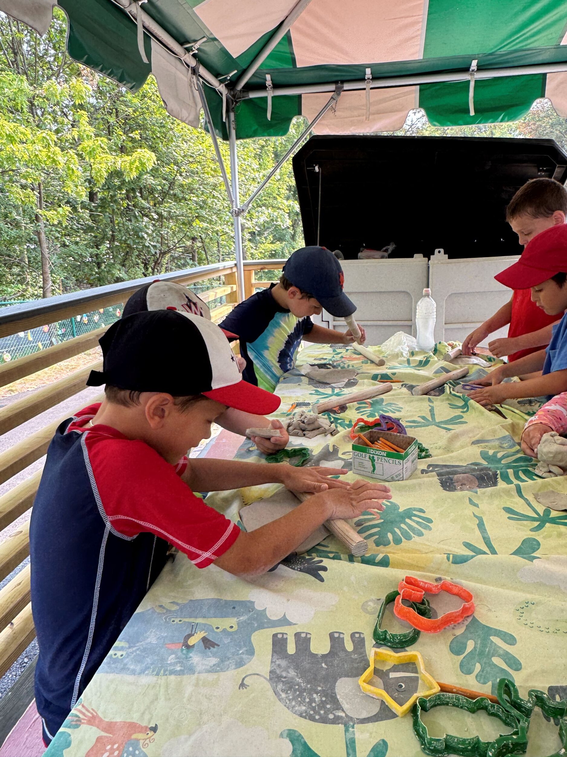 We can’t believe how fast this summer is flying by! This week our madrichim were so excited and proud to share that they are seeing and hearing all of their chanichim truly understanding them and speaking exclusively in Hebrew. What a way to end our seventh week of camp! The chanichim had so much fun while practicing their Ivrit (Hebrew) during all kinds of exciting peulot (activities)! They used Hebrew while playing tennis shulchan (ping pong) and during yoga, where they did stretches using their own shavui mishkal (balance). In Keramica (ceramics) Tzeirim used alim ametiim (real leaves) to make and paint kearot (bowls). Kochavim made tzalachot in the shape of a tapuach (apples dishes) and decorated them with dvorim v’dvash (bees and honey) and wrote Shana Tova on them, just in time for Rosh HaShana! In Omanut, the chanichim created fun sea creature drawings using tziv’ei mayim (water colors) and in Park Mada, they used a 3D printer to make cool tarot b’tlat meymad (3D shapes). It was a week full of fun learning and Hebrew everywhere!