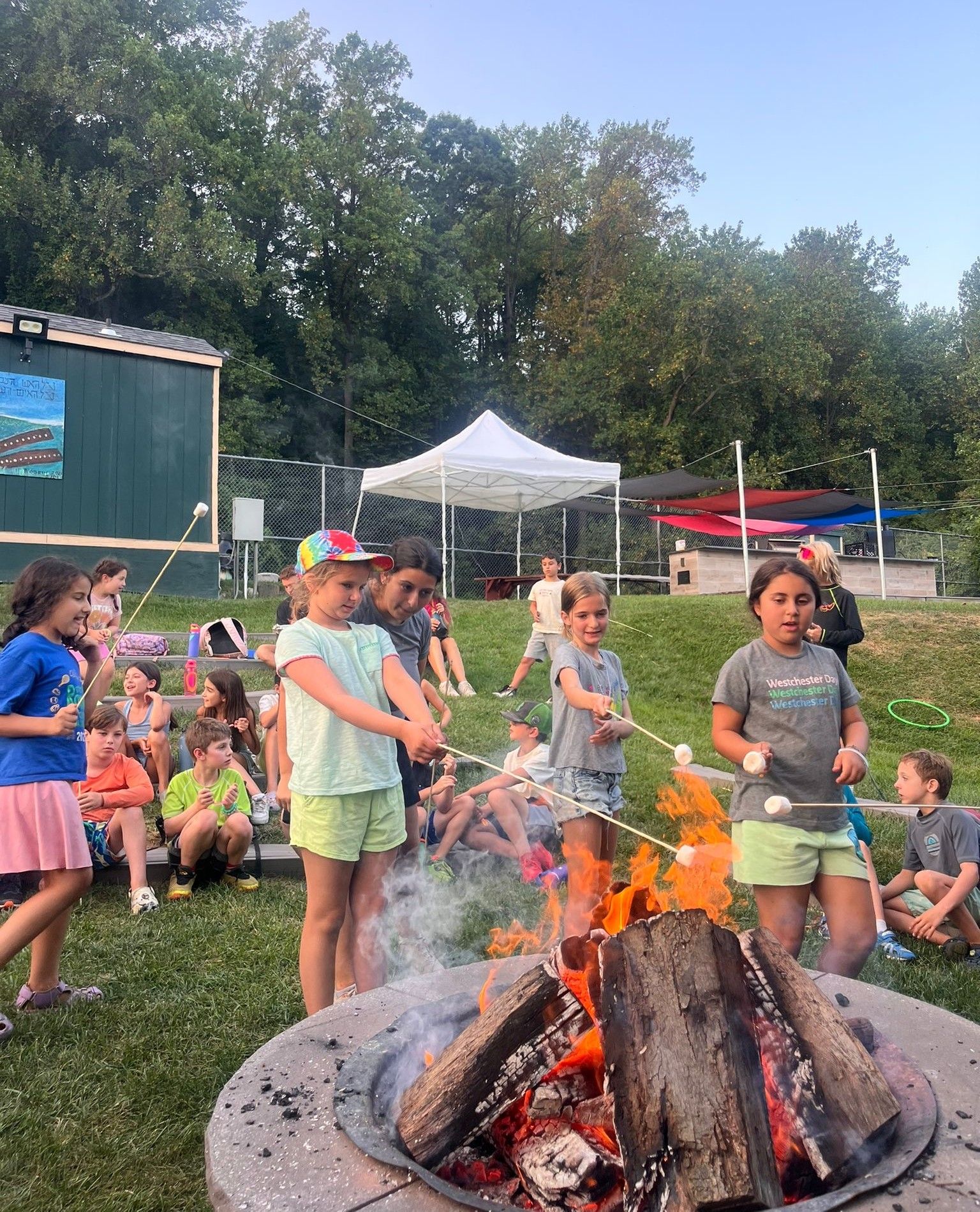 We have had a chalom week at camp! The highlight was our overnight at camp, which made the entire week feel extra special. From start to finish, the evening was packed with fun activities! Campers enjoyed extra swim time, challenged themselves on the Migdal, played games of capture the flag, and relaxed at Maayan while doing creative beading. The madrichim (counselors) ran great activities that kept everyone smiling all evening. We had a silent disco dance party, a fun egg drop from the Migdal, where each bunk built a way to keep their egg from cracking and a big game of bingo. We ended the night around the bonfire with tasty s’mores, and we even managed to get some sleep! The rest of the week was just as exciting! Tzeirim loved having extra time to play tennis, working on hitting the ball more accurately. They also enjoyed basketball, softball, and learning new yoga poses. In Park Mada, Tzeirim were hard at work with robotics and got creative using Thinker Pads to design and 3D print their very own dreidels, blending technology and tradition! In Omanut (art), campers explored the work of Dan Reisinger, an award-winning Israeli designer known for his bright colors and clever use of symbols. He created over 150 famous logos and is called the master of color and symbols. The chanichim took on a creative challenge to make their own graphic design posters inspired by Reisinger. Using the word “Ramah” they turned letters into pictures of special places at Camp Ramah Nyack, like the pool, the bridge, and the ping pong tables. The results were amazing, with creative logos that could be used for a real camp campaign!!